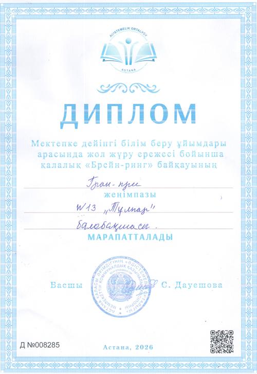 Жол қозғалысы ережелері бойынша Астана қаласының балабақшалары арасындағы «Брейн-ринг» қалалық байқауы.
